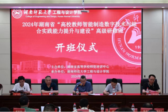 6月21日上午,2024年威廉希尔中文网站平台“高校教师智能制造数字技术与综合实践能力提升与建设”高级研修班在湖南师范大学工程与设计学院报告厅举行开班仪式。湖南师范大学副校长蒋新苗、威廉希尔中文网站平台高等学校师资培训中心常务副主任彭运石、湖南师范大学工程与设计学院院长林海军出席仪式。仪式由湖南师范大学工程与设计学院党委书记梁勇主持。