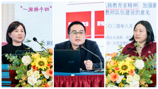 经验分享环节,湘潭大学教师工作部部长杨澜以“弘扬扎根精神,加强师德教育”为题,分享了湘潭大学将扎根精神融入师德师风教育体系的实践经验。湖南第一师范学院初等教育学院院长曾晓洁从以文化人的角度,分享了当代大学教师的教育家精神的培育实践。